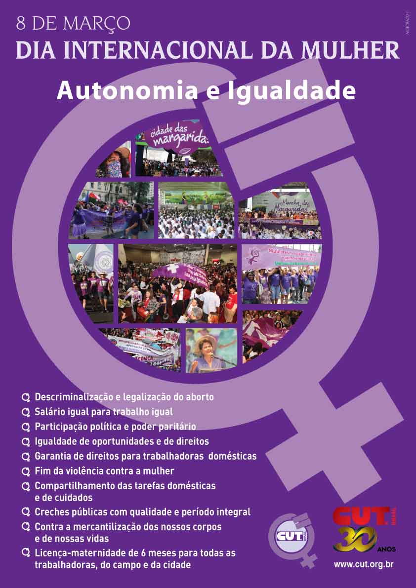 No próximo dia 8 de março, Dia Internacional de Luta das Mulheres, feministas de diversas organizações, sindicatos, coletivos e movimentos de São Paulo (SP) vão ocupar as ruas em um ato unificado para exigir autonomia e igualdade para as mulheres. A concentração começa às 13 horas, na Praça da Sé, de onde saem em caminhada até a Praça Ramos.