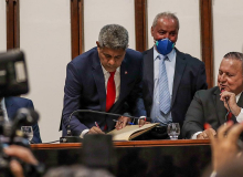 BRASIL 01 Janeiro, 2023 - 12h17 Estreante nas urnas, Jerônimo Rodrigues (PT) toma posse como governador da Bahia "Estou pronto para, junto com os partidos, movimentos sociais e com o povo da Bahia, governar ao lado de Lula e reconstruir o Brasil com dignidade e muito amor", disse o petista 01 Janeiro, 2023 - 12h17