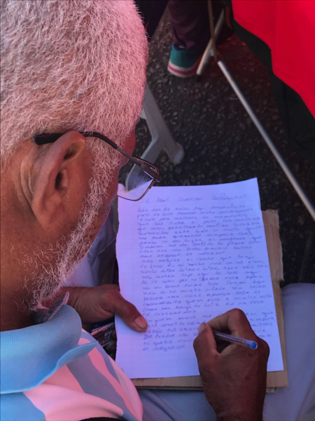 Ao redor da barraca onde as pessoas vão escrever as cartas sente-se a emoção do povo no ar.