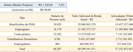 . Impacto positivo sobre os reajustes dos pisos salariais das diversas categorias de trabalhadores e trabalhadoras.