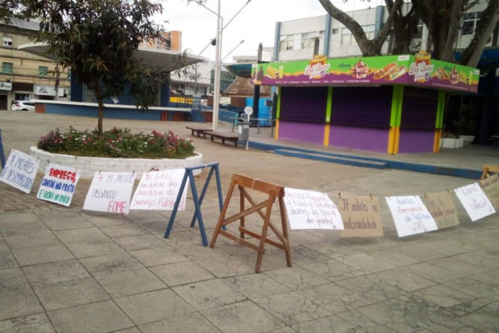 A frente da Prefeitura de Joinville amanheceu enfeitada no Dia do Trabalhador. Ainda na noite da desta sexta-feira (30), lideranças da Frente Fora Bolsonaro de Joinville colocaram velas, cruzes e faixas em defesa da vida, por vacina para todos, por auxílio emergencial de R$ 600, em defesa dos serviços públicos e pelo fim do governo Bolsonaro.