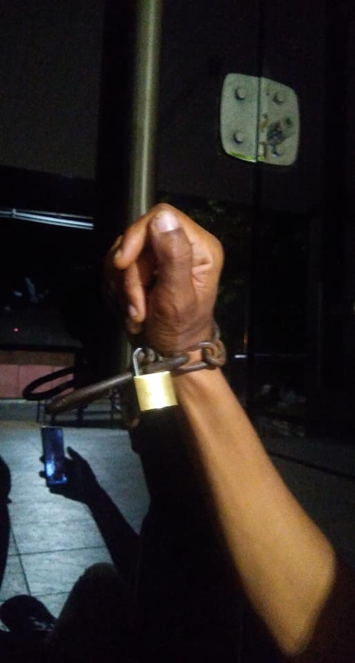 Eles estão acorrentados desde quinta-feira (5) em frente à reitoria, em protesto contra indicação de 5º colocado na lista tríplice para dirigir a Universidade
