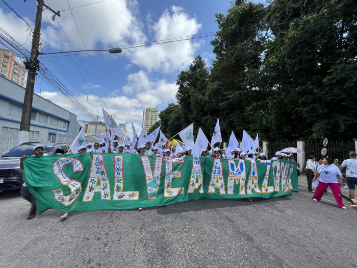 “Nós Amazônidas e também povos da floresta, porque somos da Agricultura Familiar, nos somamos a essa Marcha que irá terminar com a entrega, ao presidente Lula, de um documento, que começou a ser construído coletivamente desde fevereiro e finalizado no último dia do Diálogos Amazônicos, e que tem como principal reinvindicação políticas públicas socioeconômicas para os povos originários e a sociedade em geral”, destaca a presidenta da CUT-PA, Euci Ana Gonçalves.