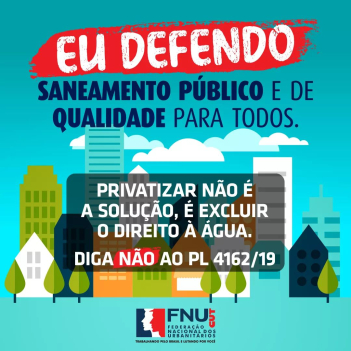 É por isso que entidades sindicais e da sociedade civil estão reforçando a luta em defesa da água potável e pelo tratamento do esgoto pelo setor público para que a população brasileira tenha direitos básicos preservados. Para isso, iniciaram uma nova pressão sobre os senadores para que digam não ao Projeto de Lei (PL) nº 4162/2019, que pode ser votado a qualquer momento no Congresso Nacional.