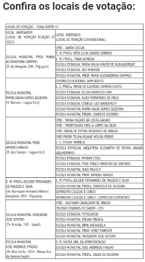 Em Natal, no Rio Grande do Norte, foram definidos 35 locais de votação que contarão com apoio da Justiça Eleitoral para realização da eleição do Conselho Tutelar. O pleito elege 20 membros titulares (cinco para cada uma das quatro regiões administrativas da cidade), que vão ocupar o cargo no quadriênio 2024/2028.
